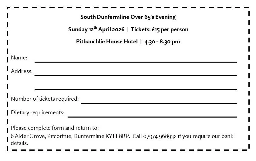 The Over 65’s Evening for 2026 is planned for Sunday 12th April from 4:30 – 8:30pm. Tickets are £15 per person for 2 courses followed by tea/coffee with entertainment as well. You can pay via bank transfer or Stripe using the link below: