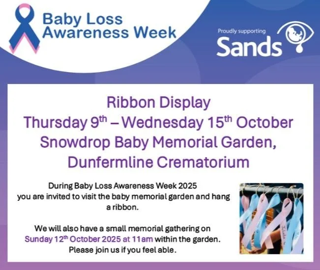 Our community council member Laura is supporting the Baby Loss Awareness Week Ribbon Display in Dunfermline again this year.